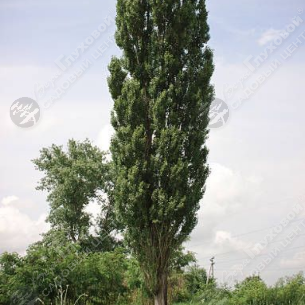 Листопадное дерево 10-15 метров высотой с узкоколонновидной, плотной кроной в диаметре около 2 м. Кора светло-серая, долго остается гладкой. Молодые побеги голые, блестящие, красновато-бурые. Ветви слегка извилистые, направлены вверх. Темп роста быстрый. Листья почти округлые, молодые - с бронзовым налетом, летом - матово-зеленые, снизу голубоватые, осенняя окраска красно-оранжевая, черешок длинный, отчего при дуновении ветра листья "шуршат". Мужской клон (не пушит). Образует корневые отпрыски.