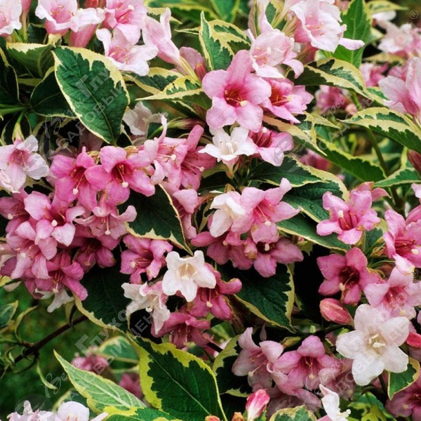 белой каймой. Цветки бело-розовые, колокольчатой формы, до 3,5 см, многочисленные,