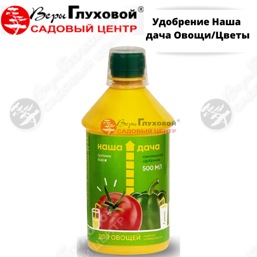 «Наша Дача» для овощей и цветов. Универсальное - Жидкое органо-минеральное удобрение для овощей и цветов на основе природных стимуляторов роста – гуматов. Стимулирует рост, увеличивает размер плода, улучшает вкусовые качества плодов, повышает устойчивость к болезням. Улучшает структуру почвы Обеспечивает быстрый начальный рост растений Формирует бутоны, завязываемость плодов Способствует длительному и обильному плодоношению Повышает иммунитет растений Обеспечивает урожайность ПРИМЕНЕНИЕ Апрель - Октябрь 1 раз в неделю. Корневая подкормка: отмерьте 20 мл (целый колпачок) и разведите в 2 л воды. Норма расхода как при обычном поливе. Внекорневая подкормка: отмерьте 10 мл разведите в 2 л воды (1/2 колпачка). Опрыскивайте поверхность листьев, исключая попадания раствора на цветки или опушенные листья. Чередование корневых и внекорневых подкормок: 1 раз в 7-14 дней.